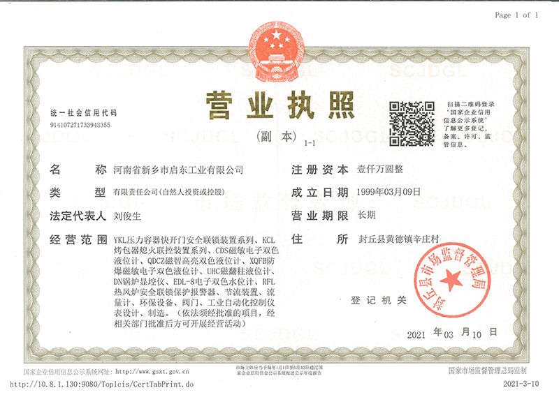 河南省新鄉市啟東工業有限公司始建于1987年,是專注研發(fā)、生產自動化儀器儀表(主要與壓力容器、鍋爐等容器配套使用)的廠家。主要產品有液位計(磁敏雙色型、磁翻柱型等)系列、烤包器熄火聯控裝置系列、壓力容器快開門安全聯鎖保護裝置系列、鍋爐報警器系列。二十多年來,公司產品暢銷國內并遠銷俄羅斯、蒙古與東南亞,深得廣大用戶的信賴和好評。我們多年來致力于自動化儀器儀表的研制生產,公司現具有完善的生產、試驗、檢測手段和設備??萍紕?chuàng)新、誠信服務,是我們不變的經營理念,我們將以強有力的技術支持及售后竭誠為客戶提供良好的服務。  2012年我公司成功研發(fā)了KCL系列烤包器熄火聯控裝置,并于2013年2月2日榮獲中華人民共和國國家知識產權局辦法的《實用新型**證書》<**號:2021202257735>該產品廣泛應用于唐鋼等大型鋼鐵企業,為烤包器安全作業提供了有力的保障?! ?002年我公司成功研發(fā)磁敏電子雙色液位計獨特的高亮度LED紅綠雙色顯示,獲得了專家的首肯和用戶的一致好評。在此基礎上我公司研發(fā)人員十年磨一劍,致力于XQFB-1防爆型磁敏雙色液位計的研發(fā),于2013年12月27日由國家防爆電器產品質量監(jiān)督檢驗中心檢驗合格并頒發(fā)防爆合格證書<編號:cnex19.0883>。該產品性能得到了充分的發(fā)揮,廣泛應用于含有Ⅱ類A·B級T1-T4組可燃氣體或蒸汽與空氣混合形成的爆炸性混合物的0區、1區危險場所。連接用戶DCS或PLC系統實現遠距離集中顯示和控制,從而實現節(jié)能、數字化管理。為用戶增加了一定的經濟效益和社會效益,。2014年公司成功申請了夢潤儀表的logo,新的品牌新的形象,夢潤儀表是啟東的LOGO, 歡迎新老用戶前來洽談合作?! ∥覀円蝗缂韧刈⒅乜蒲械耐度?,憑借產品的不斷更新、加大科技含量,進一步拓展市場。我們相信品質成就未來,以過硬質量、優(yōu)惠價格、完善的售后服務熱忱歡迎廣大客戶來我司視察指導、洽談業務;精誠合作,共創(chuàng)輝煌!